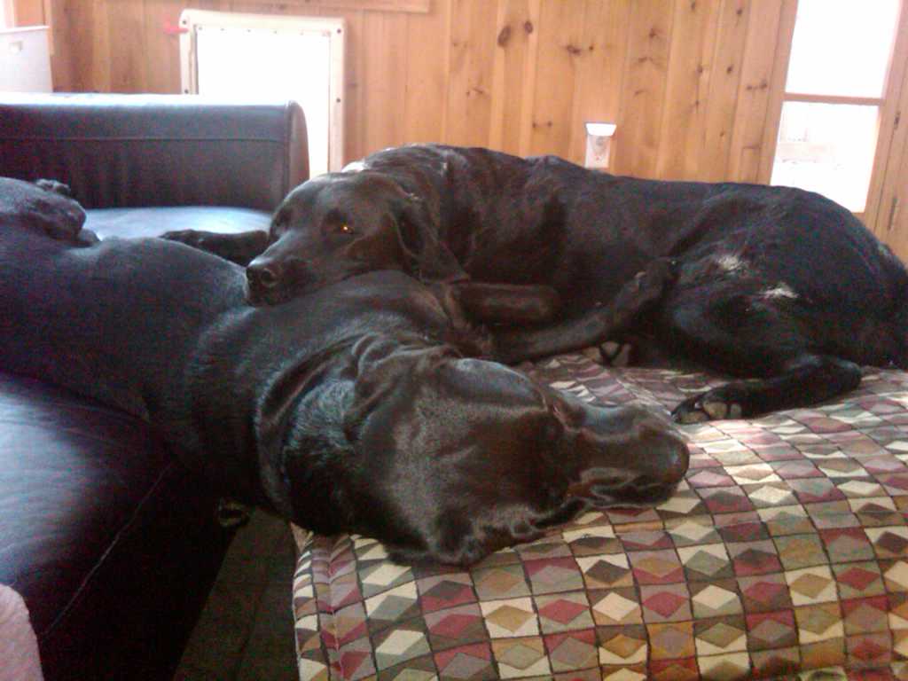 Sarah whole different story. It is a daily management thing and you never quite know how she is going to be. I am sure she is not enjoying this much either. Her breathing is awful but she still eats, drinks and walks around but not for long. We had a very bad weekend a couple of weeks ago when she got over medicated on some new stuff I was trying to help her be less anxious. So sedated that she could not get up, hold herself up and would not eat. Lasted about 4 days and then there has been a gradual improvement. She is on an antibiotic which she just finished and predizone which is tapering down. We will see after that how she does. Her back end is definitely worse and when not pacing around the yard is usually lying down. I noticed this week a couple of sore spots on her back paws probably because of how she is lying all of the time, but she likes to lay on the tile floor and will not lay on the blankets or towels for the most part. Recently 2 friends ethuanized there labs who are about the same age and when I was in the vet this week with Sidney a dog was in their with owners for the same thing. Jeepers I start sobbing in the vet and I don't even know the people or the dog but he looked so sad and confused. I am on the edge constantly,..... ridiculous.